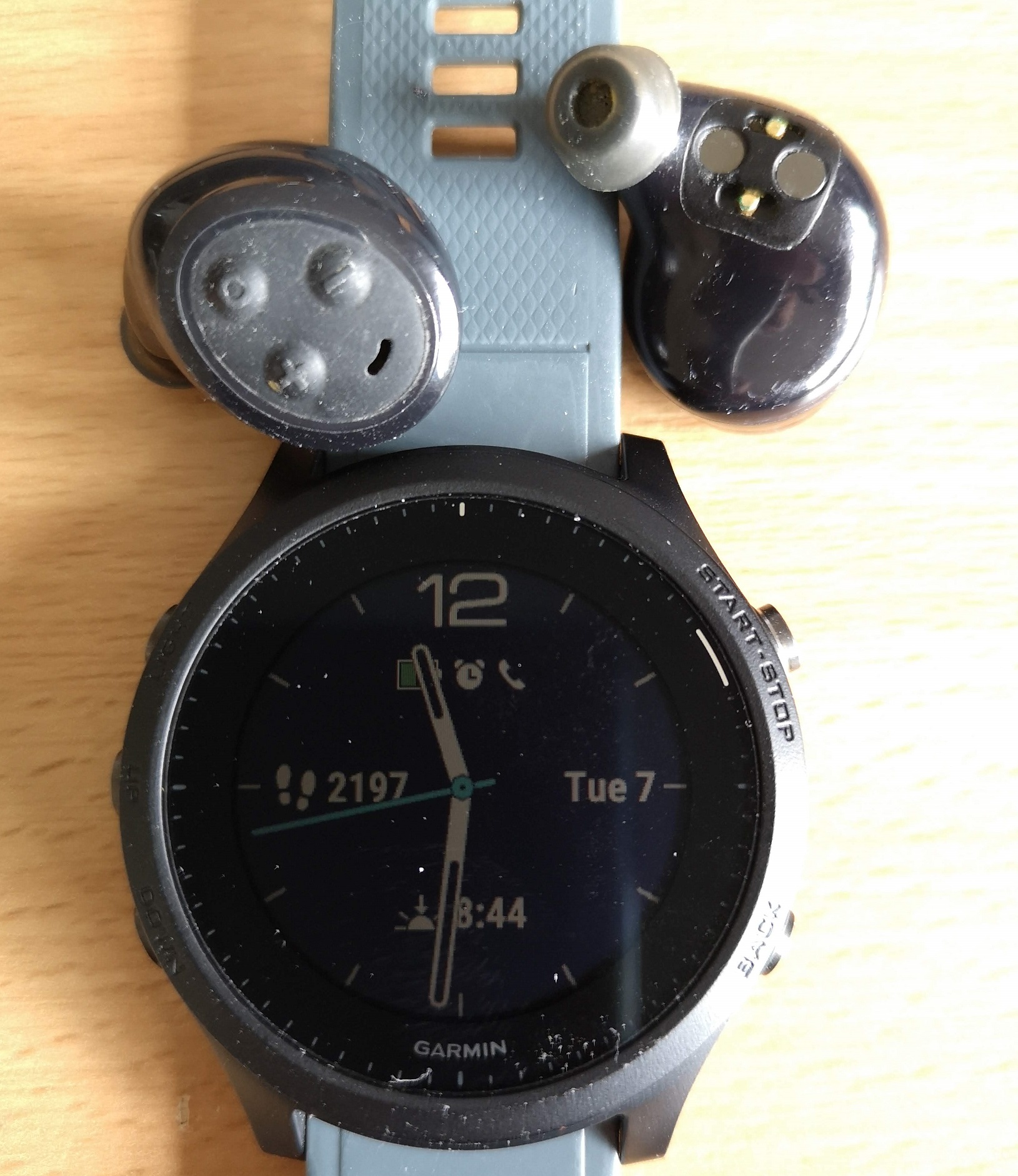Plantronics BackBeat FIT 3100 | Yes | 2.4 | Had to switch primary bud to left side from app but afterwards had zero dropouts with watch on left | https://amzn.to/2F0x1aS |